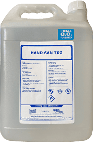 - Available as REsan, Hand Sanitiser 70 or Hand San 70 Gel